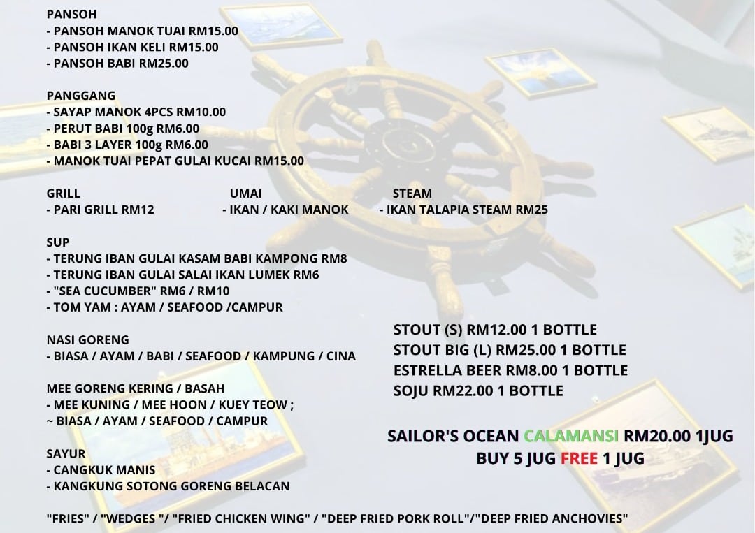 Sailor's Cafe & Bistro Menu